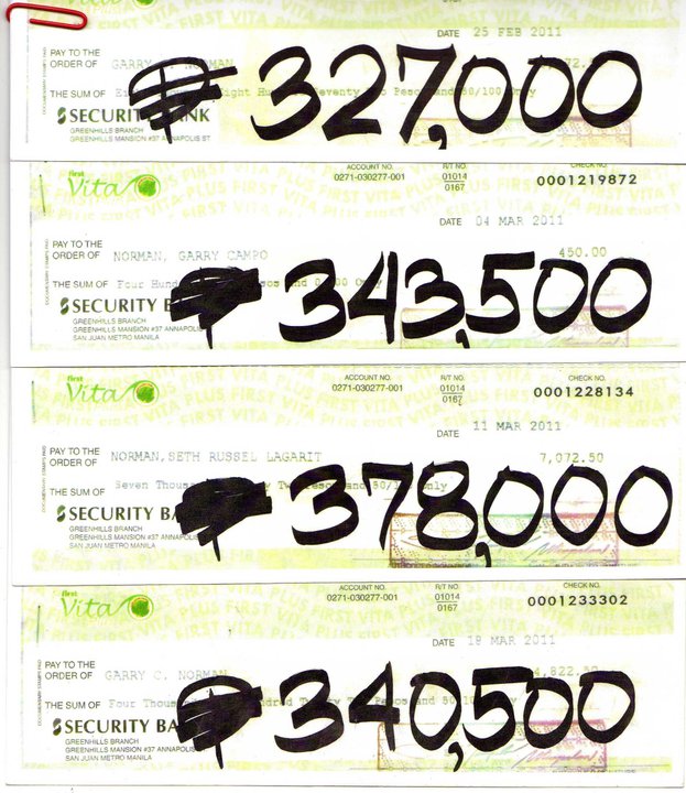 Mr. Garry Norman total check for 1 month..Php 1.3M from Feb. 18 to March 11, 2011.